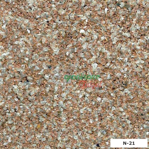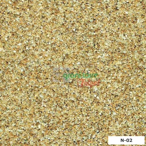 O material é composto de granulados (mármores, granitos naturais, calcários, arenitos, etc.) moídos em tamanhos uniformes, classificados em granulometrias 0 (Especial) com aglomerante acrílico, preparado em nossa fábrica, permitindo total qualidade tanto em aderência à parede como em tonalidade.