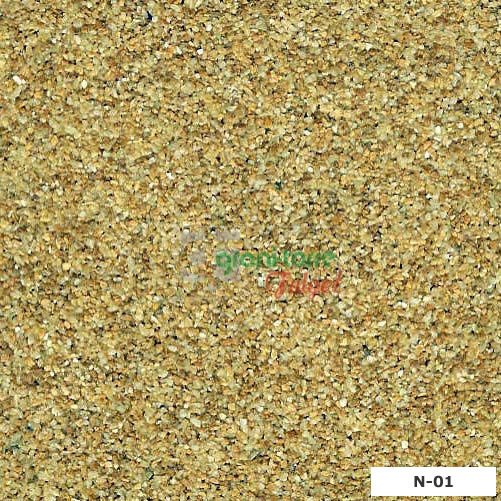 O material é composto de granulados (mármores, granitos naturais, calcários, arenitos, etc.) moídos em tamanhos uniformes, classificados em granulometrias 0 (Especial) com aglomerante acrílico, preparado em nossa fábrica, permitindo total qualidade tanto em aderência à parede como em tonalidade.